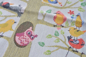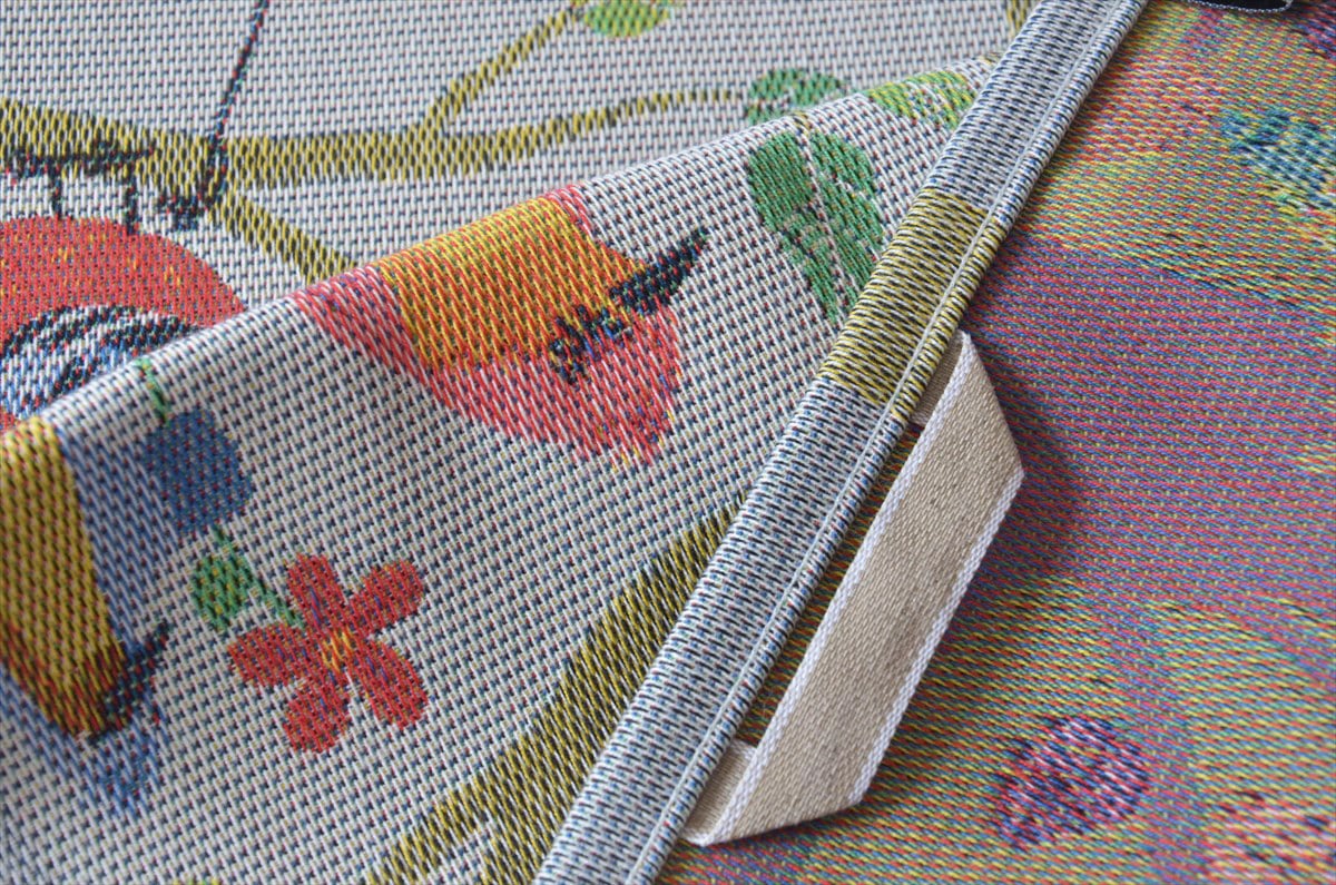 春の野原を意味する「vårfaglå」は、小枝にたくさんの愛らしい鳥たちがとまっているハッピーなデザイン。裏側の短辺にフープがあり、フックなどにかけてお使いいただける「タオル」タイプです。愛らしい絵柄なので、壁に飾るタペストリーにもおすすめ。もちろんランチョンマットやテーブルセンターにも!
