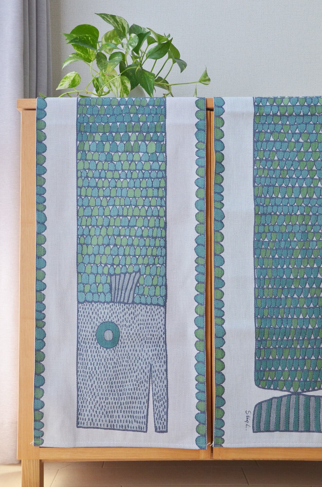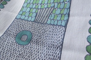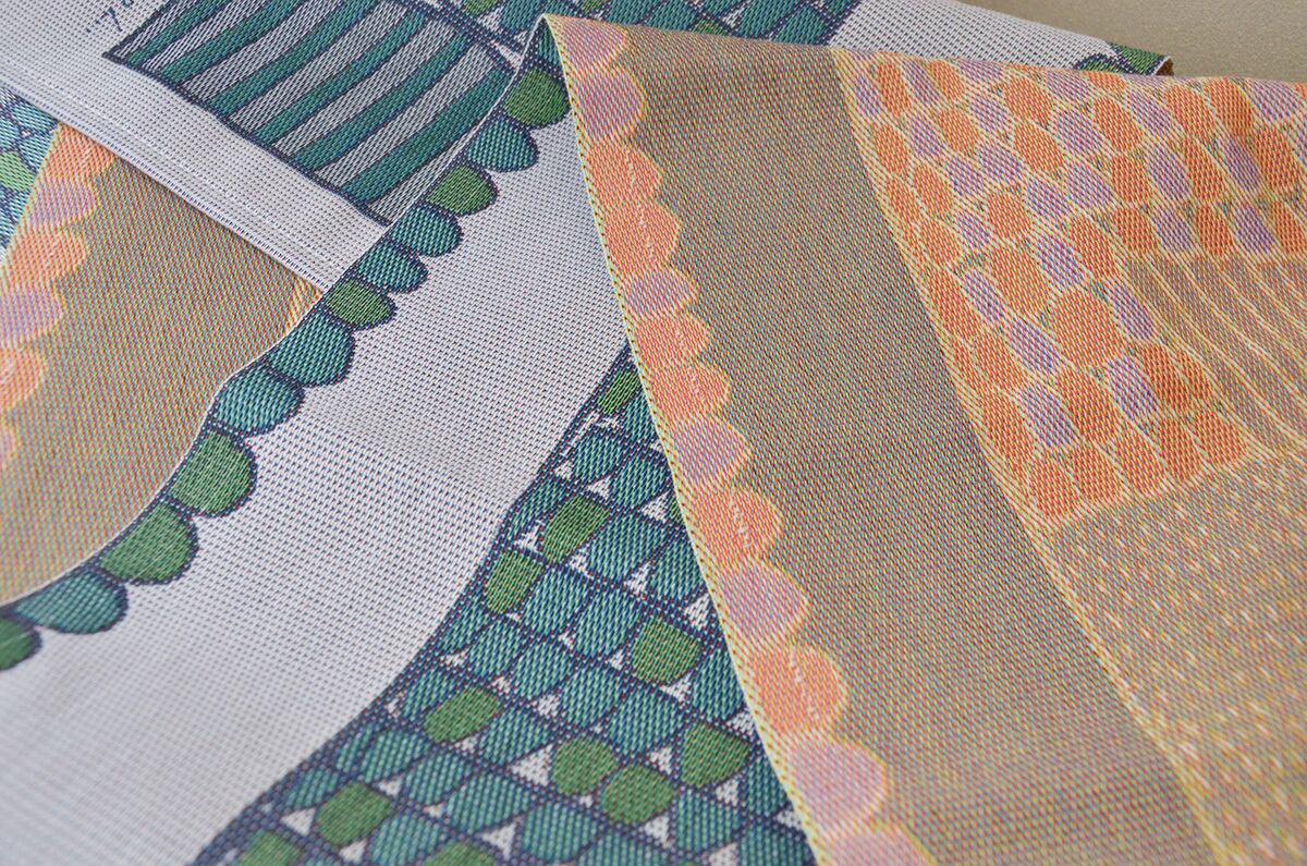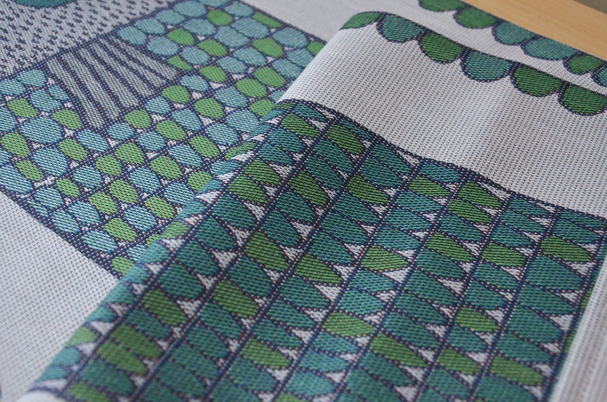 FISKBENは、スウェーデン語で「魚の骨」。骨、というより鱗を感じるデザインで、どことなく、鯉のぼりな雰囲気も。色々なグリーンで描かれた、愛らしいデザインです。