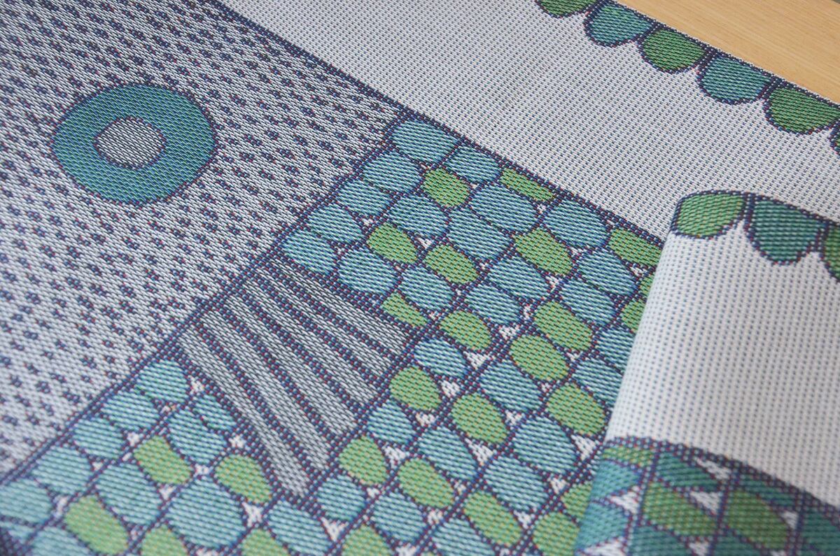 素材は、オーガニックコットン100%の6色織り。素材の織り糸が何層にも重なっているので厚みがあり、柔らかくやさしいさわり心地です。テーブルランナーとしてはもちろん、インテリアとして壁に飾っても。空間を明るく元気にしてくれます。