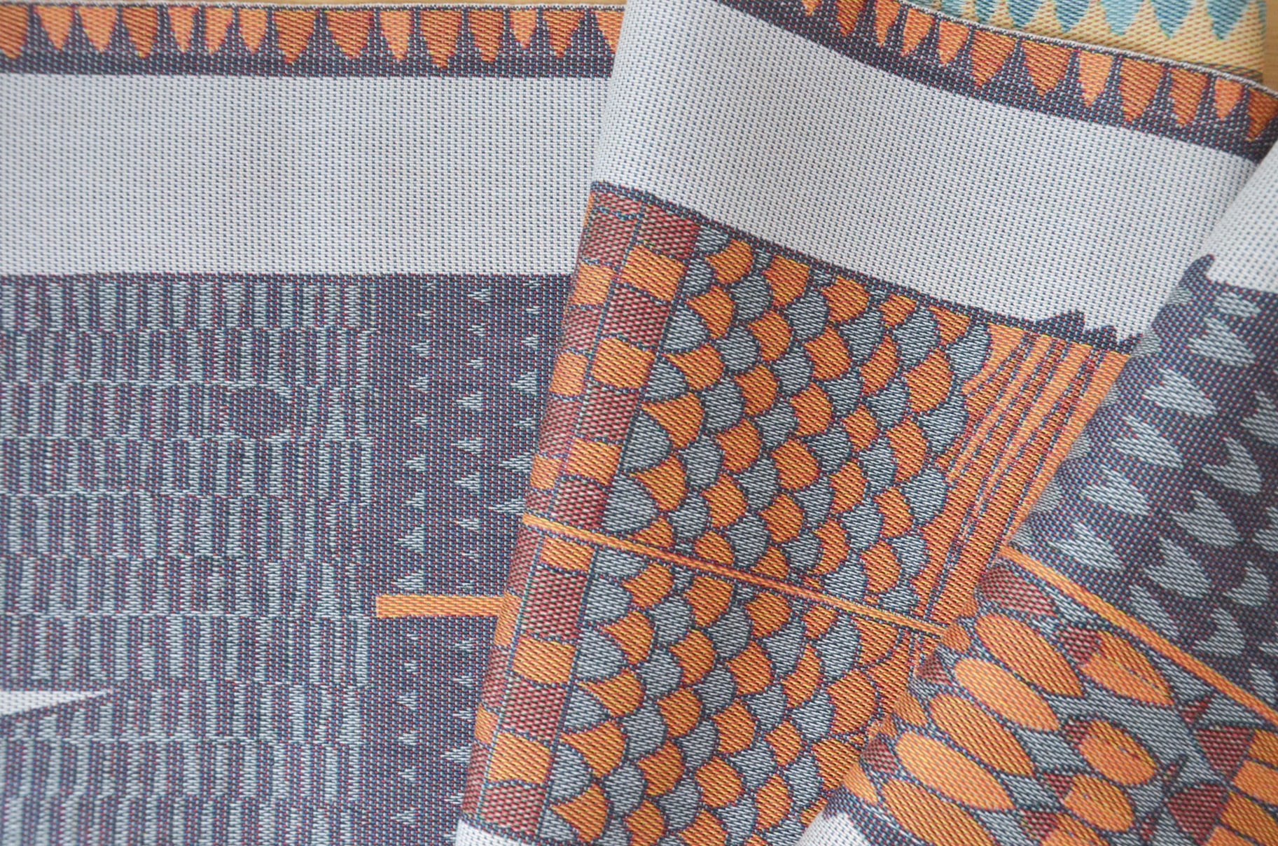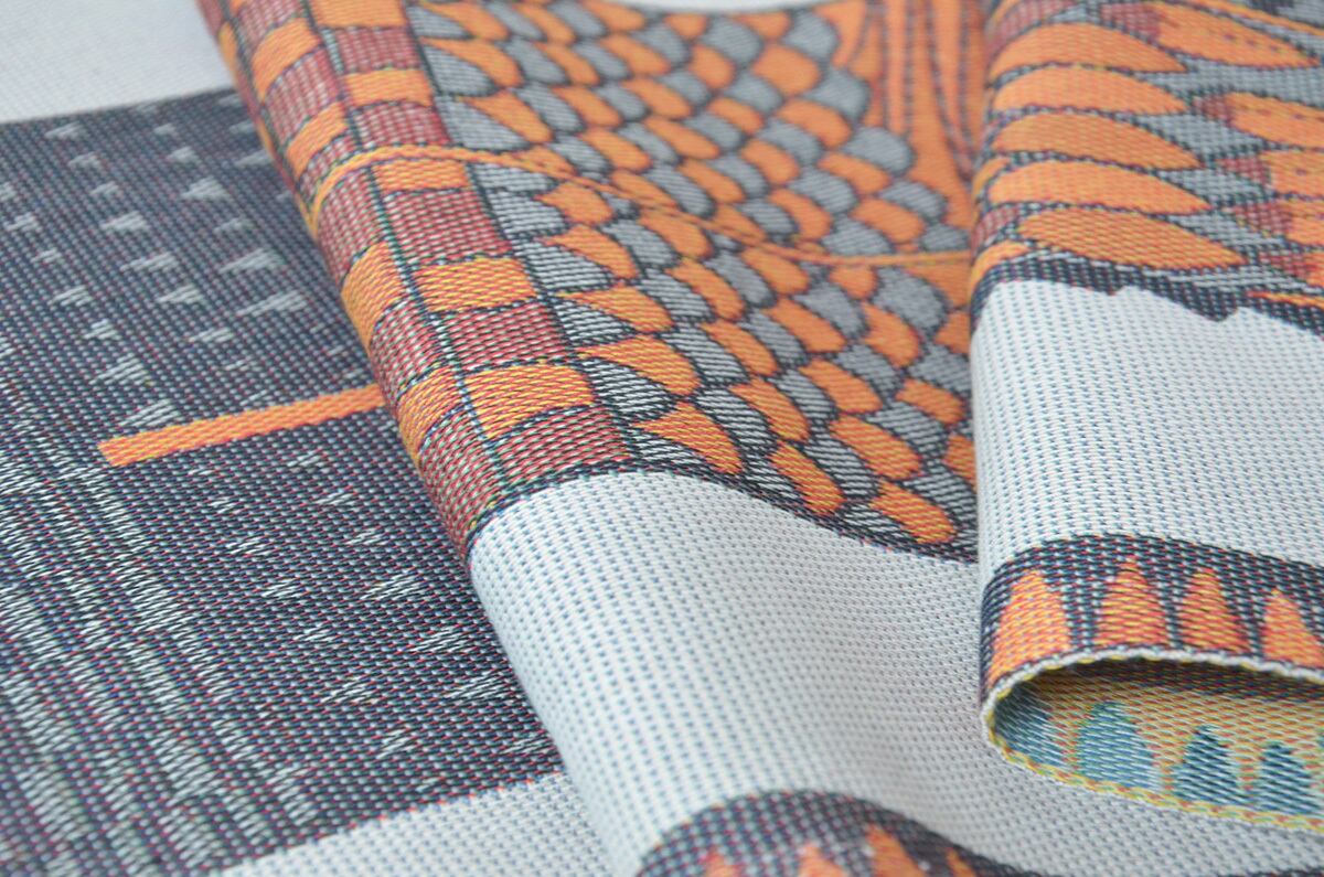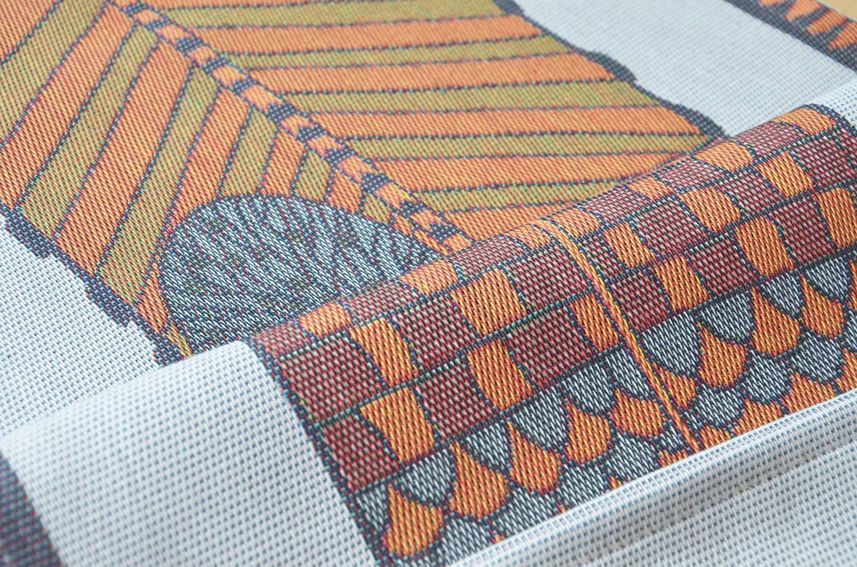素材は、オーガニックコットン100%の6色織り。素材の織り糸が何層にも重なっているので厚みがあり、柔らかくやさしいさわり心地です。テーブルランナーとしてはもちろん、インテリアとして壁に飾っても。空間を明るく元気にしてくれます。