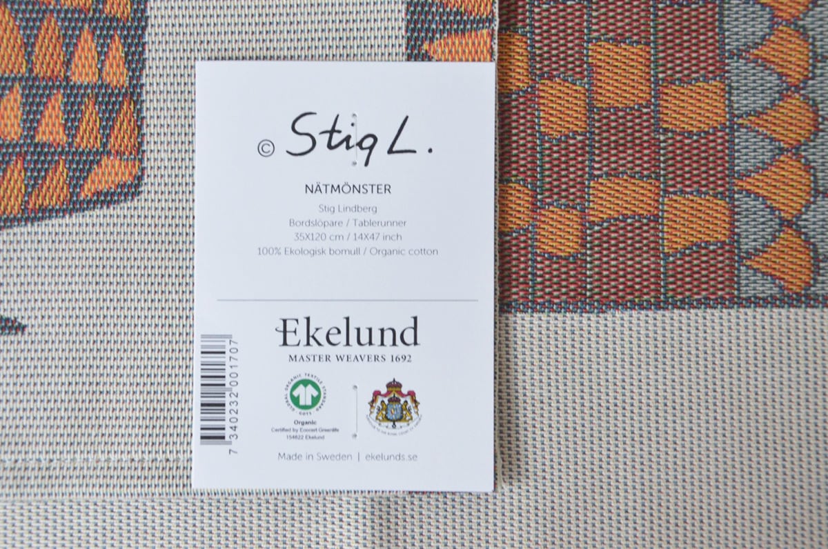 1692年創業の、スウェーデンのテキスタイルブランド、Ekelund(エーケルンド)社製のテーブルランナー・35cm×120cm。こちらは、スウェーデンのデザイナー、スティグ・リンドベリ(1916~1982年)によるデザインです。