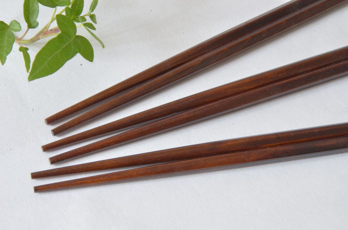 信州木曽の漆工房で、職人が一本一本手づくりで仕上げた漆の塗り箸。素地を活かしたつや消しの《摺り漆》仕上げの3膳組の塗り箸です。