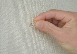 付属のピンあるいはプッシュピンを壁に挿し、パネル裏面の木枠上部を引っ掛けください。軽量なので、中央1点留めでOKです。