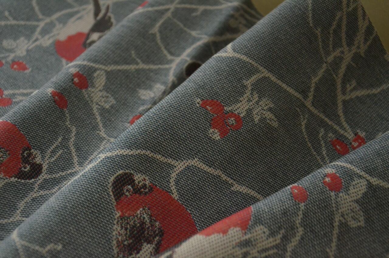 スウェーデン語でdommherre(ドムヘッレ)と呼ばれる小鳥は、オスだけお腹の赤いウソの一種。北欧デザインで度々描かれる 愛らしい小鳥です。