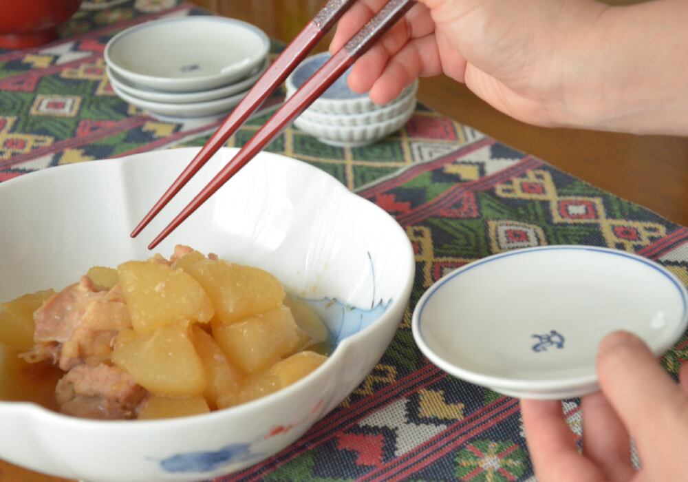 利休箸とは、茶人 千利休に由来し、中央部が太く両端が細く削り出された独特の形が特徴。懐石料理や和のお祝い膳などで使う無垢の杉箸がお馴染みですが、こちらは食卓での取り箸としてのご利用がオススメ。ハレの日やもてなしのシーンはもちろん、普段の食卓でもお使いいただけます。