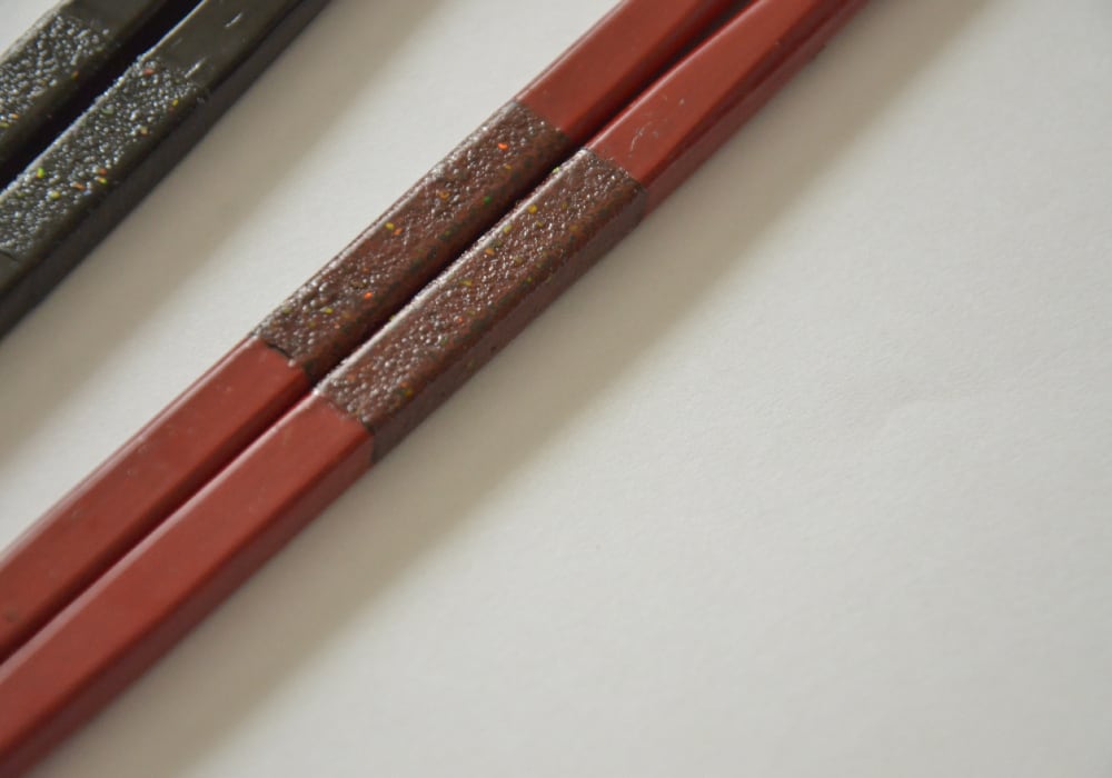 漆を塗っては乾かし磨き上げ、塗っては乾かし磨き上げ‥を繰り返すこと7回。ぼってりとした独特の風合いをもつ、手しごとのぬくもりを感じる温かみに溢れた利休箸。