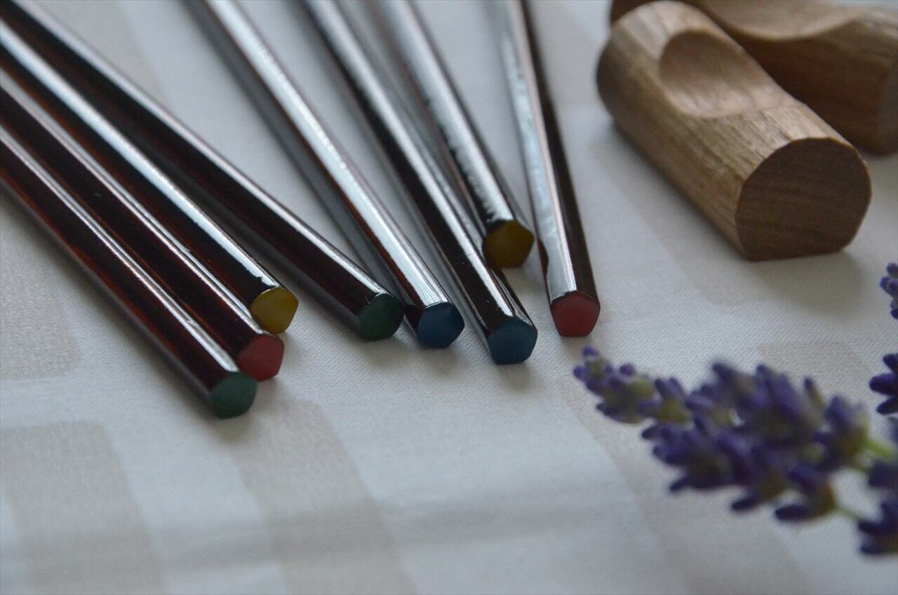 信州木曽の漆工房で、職人が一本一本手づくりで仕上げる漆の塗り箸。軽くて丈夫、ポップなアクセントカラーが魅力の【五角春慶】の塗り箸に、ちょっとお得な 大人サイズのペアセットをご用意しました。