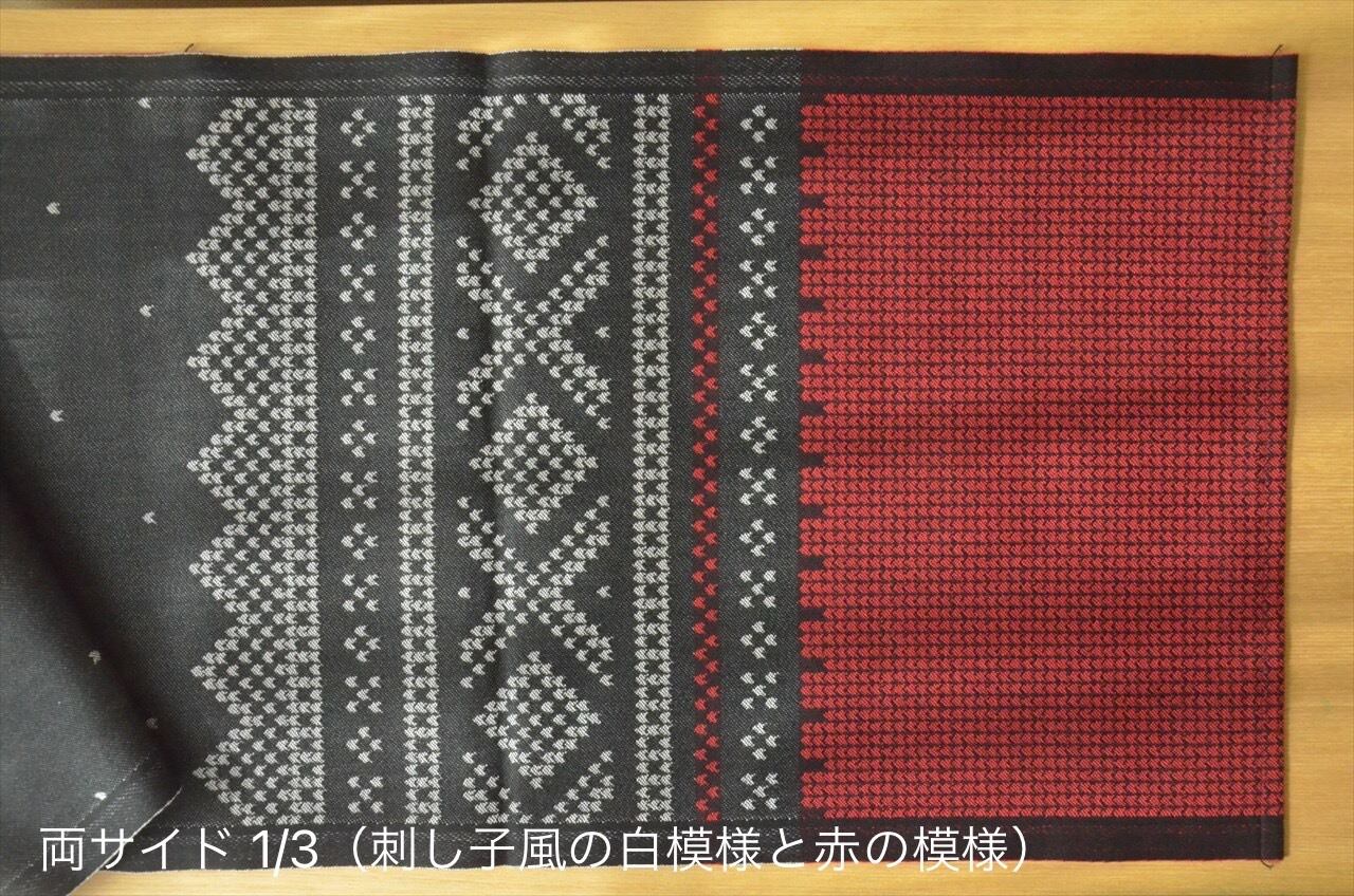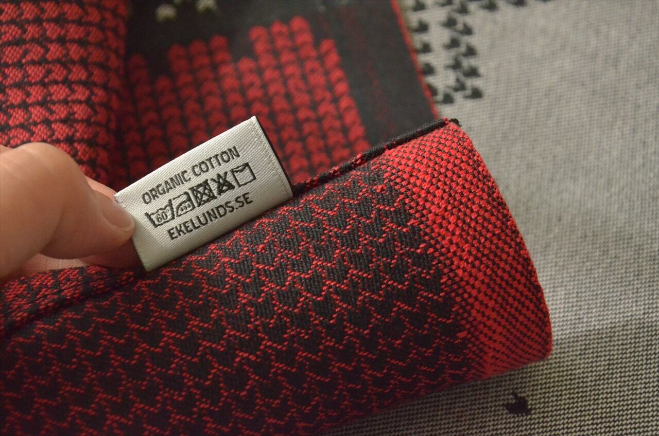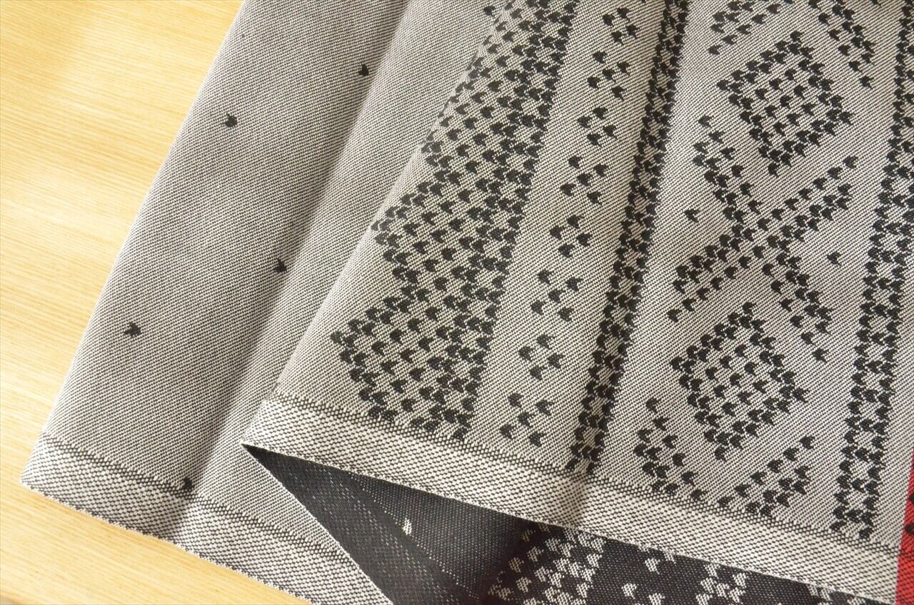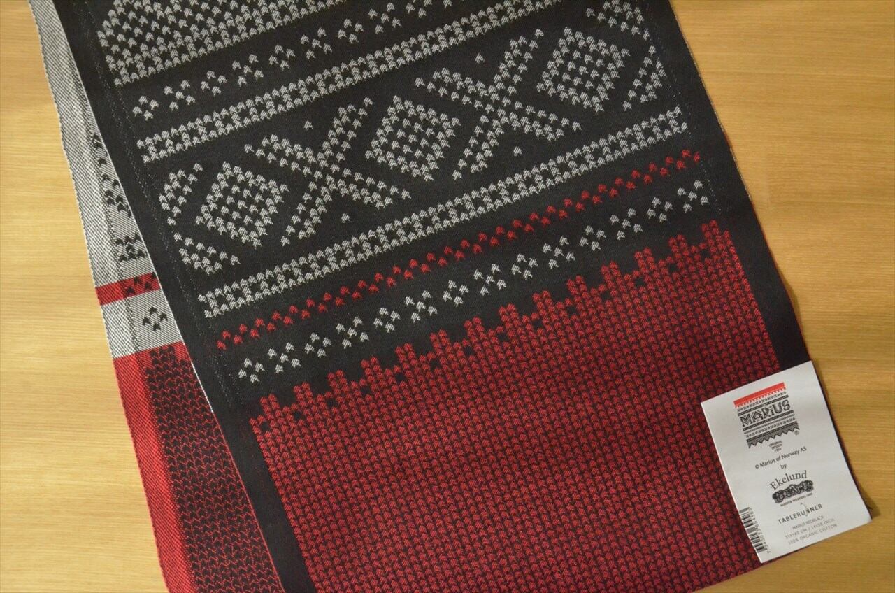 1692年創業の、スウェーデンのテキスタイルブランド、、Ekelund(エーケルンド)社製のテーブルランナー・35cm×140cm。表地は全体がブラック(裏面は白)で、両端は赤と白でデザインされています。