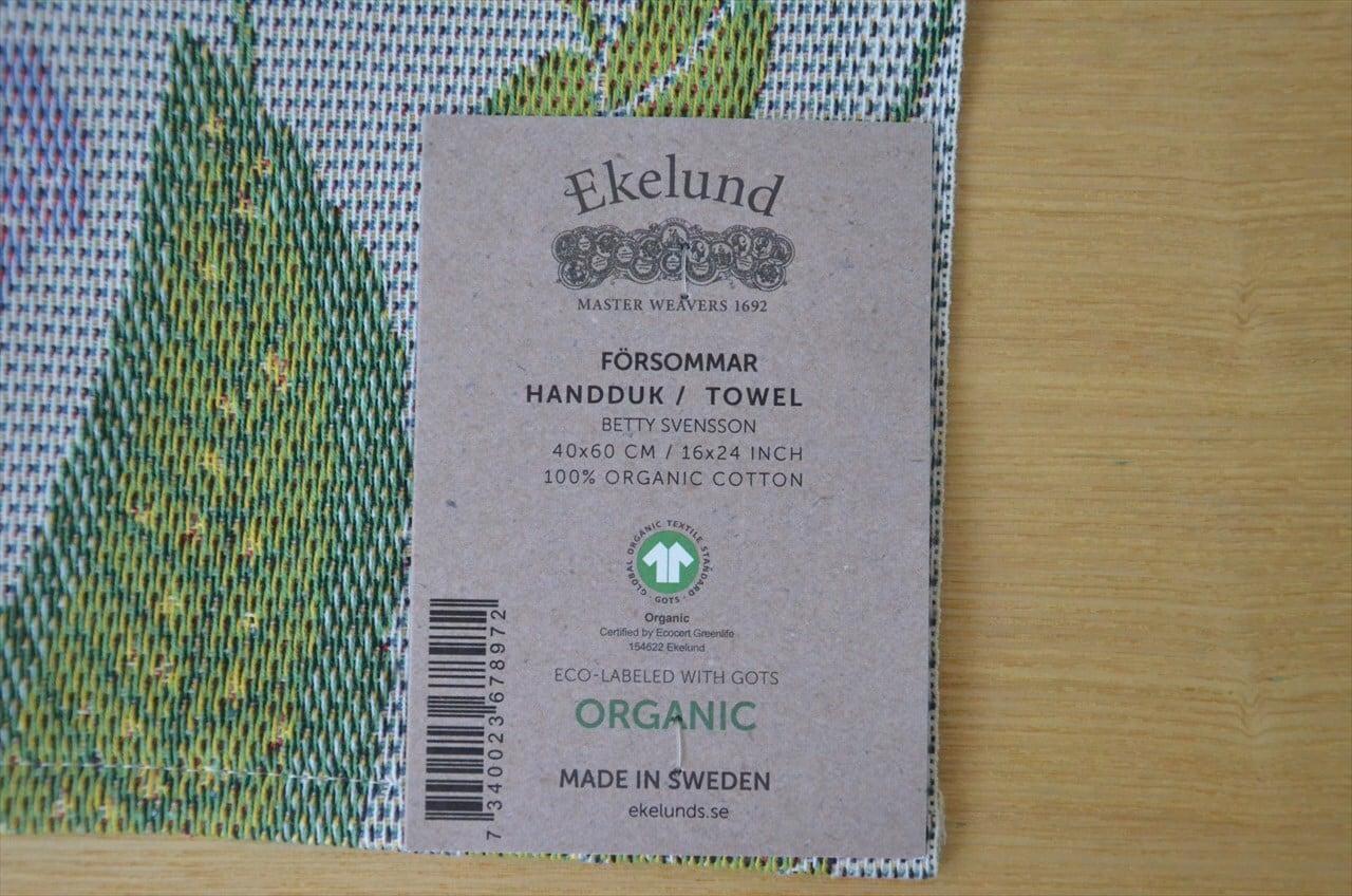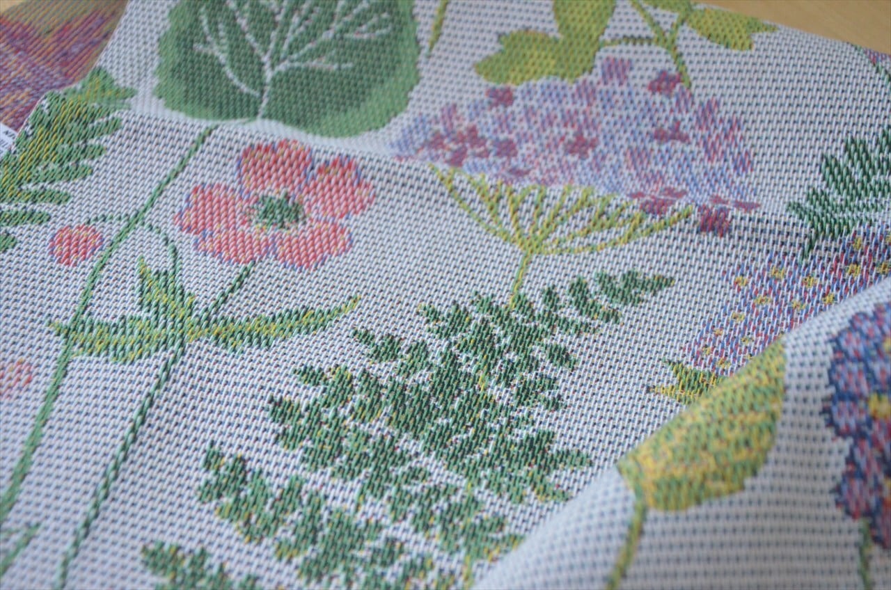1692年創業のスウェーデンのテキスタイルブランド、Ekelund(エーケルンド)社製のジャガード織タオル・40cm×60cm。アジサイやポピーなど、初夏の草花が鮮やかに描かれています。