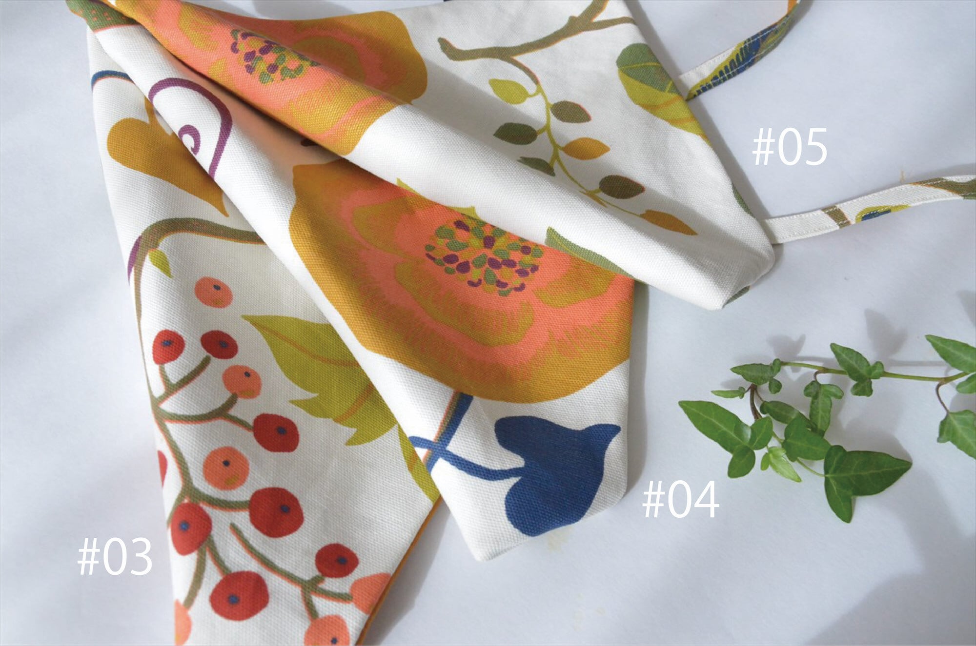 同じテキスタイルでも、裁断位置により表情が異なります。個体別にナンバー(#00など)を振っていますので、ご注文の際にはお好みのものをお選びください。なお、ハンドメイドのため商品サイズに誤差がございますのでご了承ください。