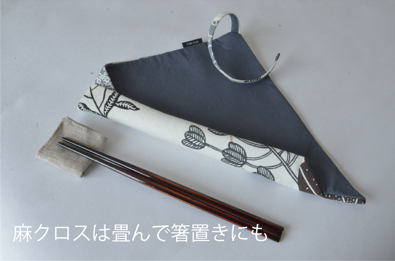 ・麻クロス(おおむね10cm四方)をおまけでお付けしています。こちらは毎日気軽にお洗濯いただけます。お弁当箱と一緒にキッチンでささっと手洗いするのがオススメです。麻なので乾きが早くお手入れ簡単です。