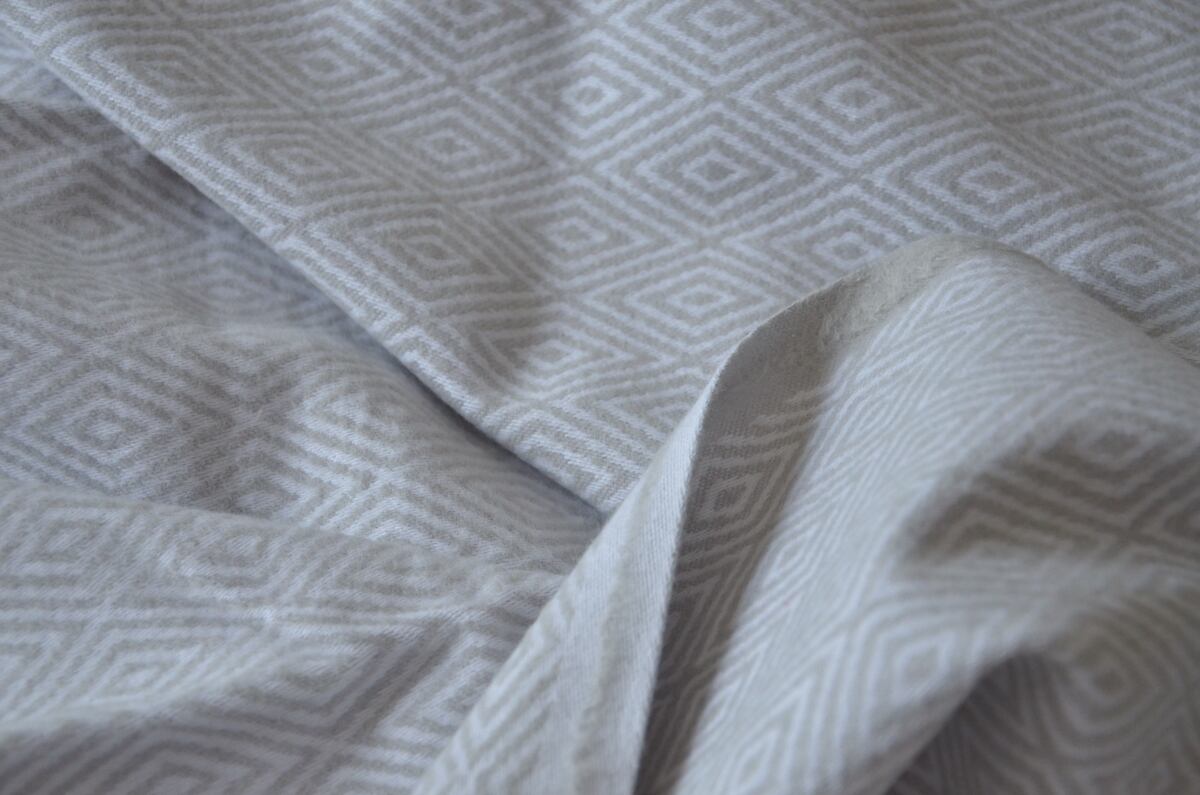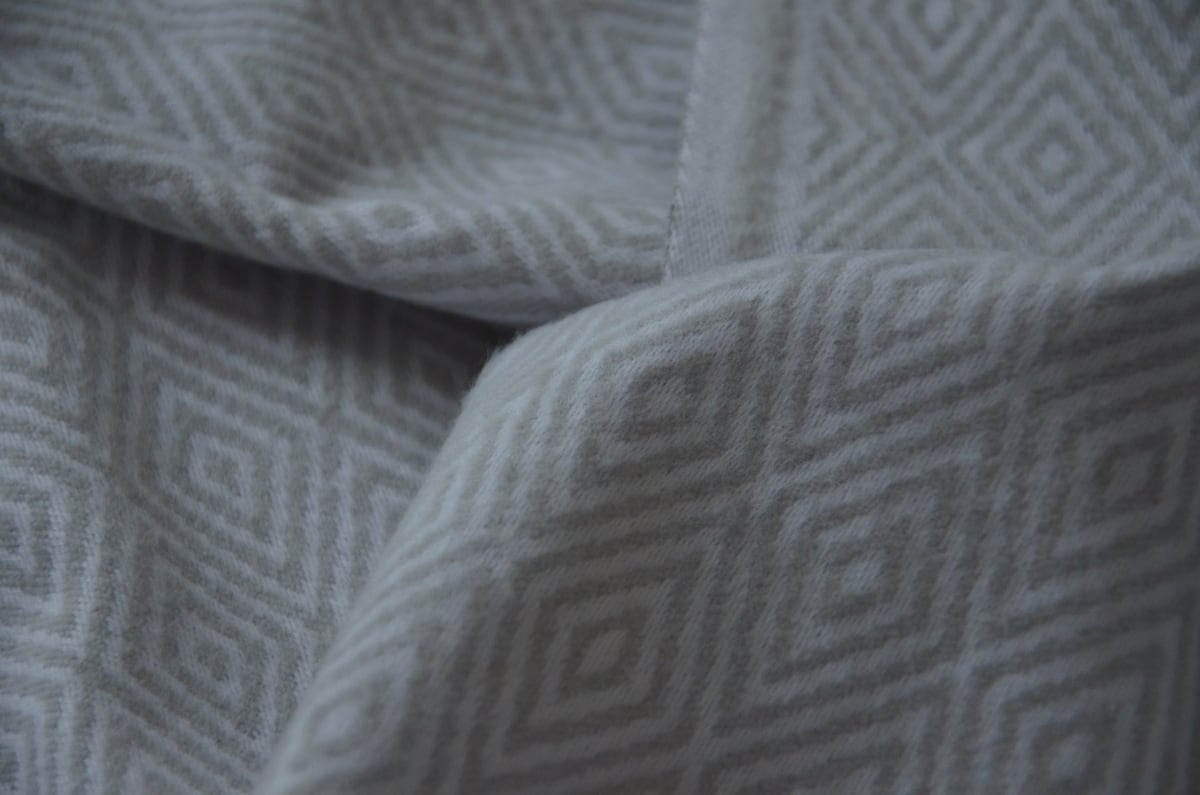 デザインは、シンプルなダイヤ柄。白と薄いグレーの2色織。