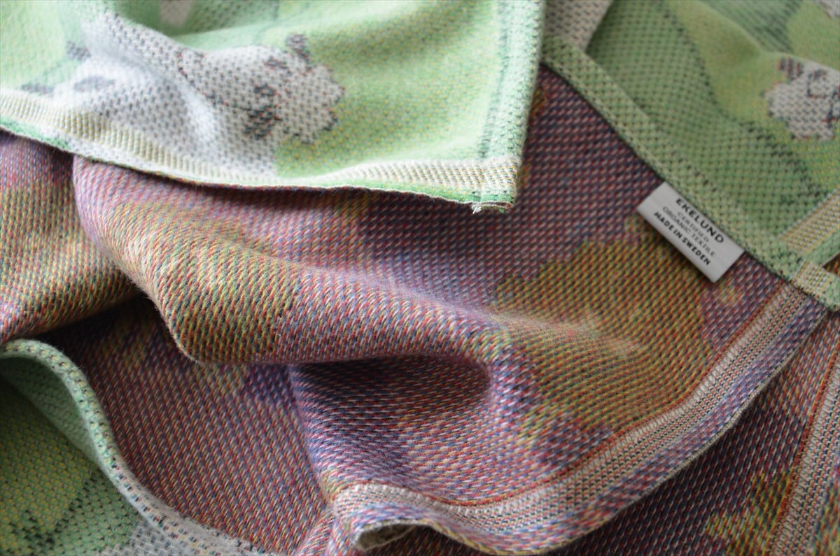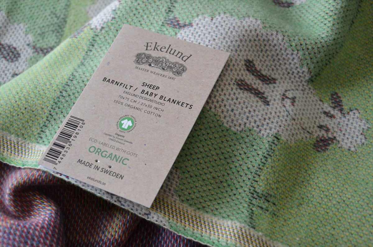スウェーデンの老舗テキスタイルブランド、Ekelund(エーケルンド)社製のオーガニックコットンブランケット・70cm×75cm。ちいさなお子さまのための、薄手の起毛ブランケットです。