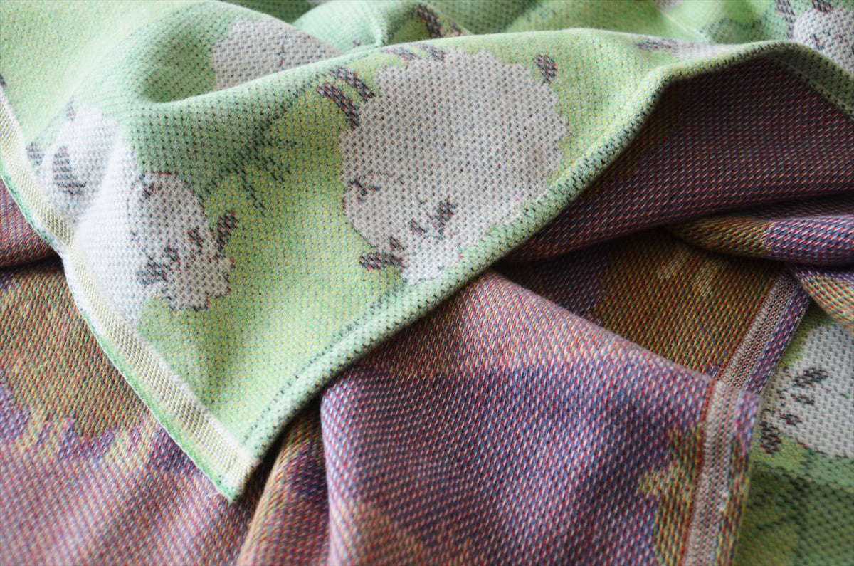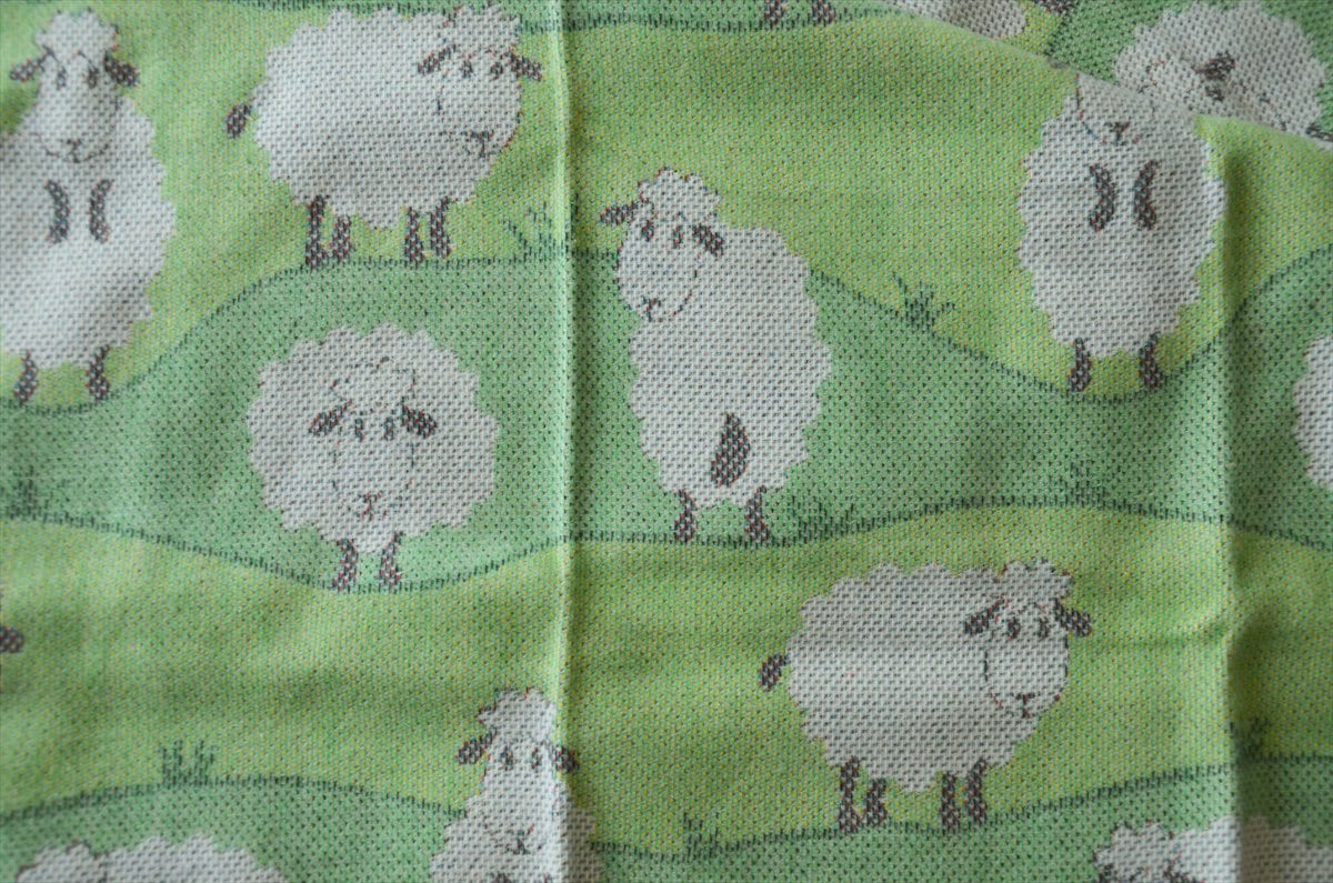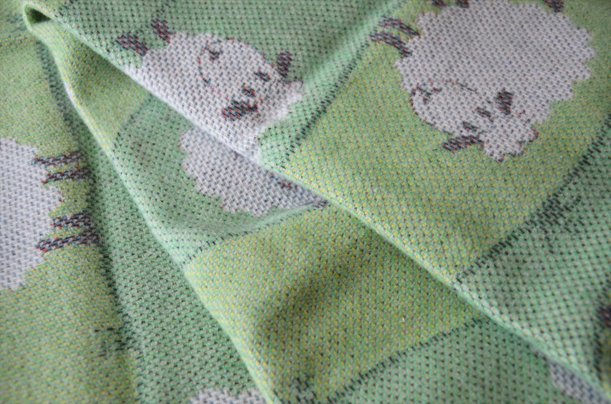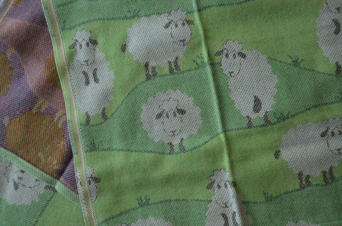 こちらはキュートなひつじ柄。グリーン地の牧場にさまざまな仕草・表情をしたひつじがたくさん描かれています。